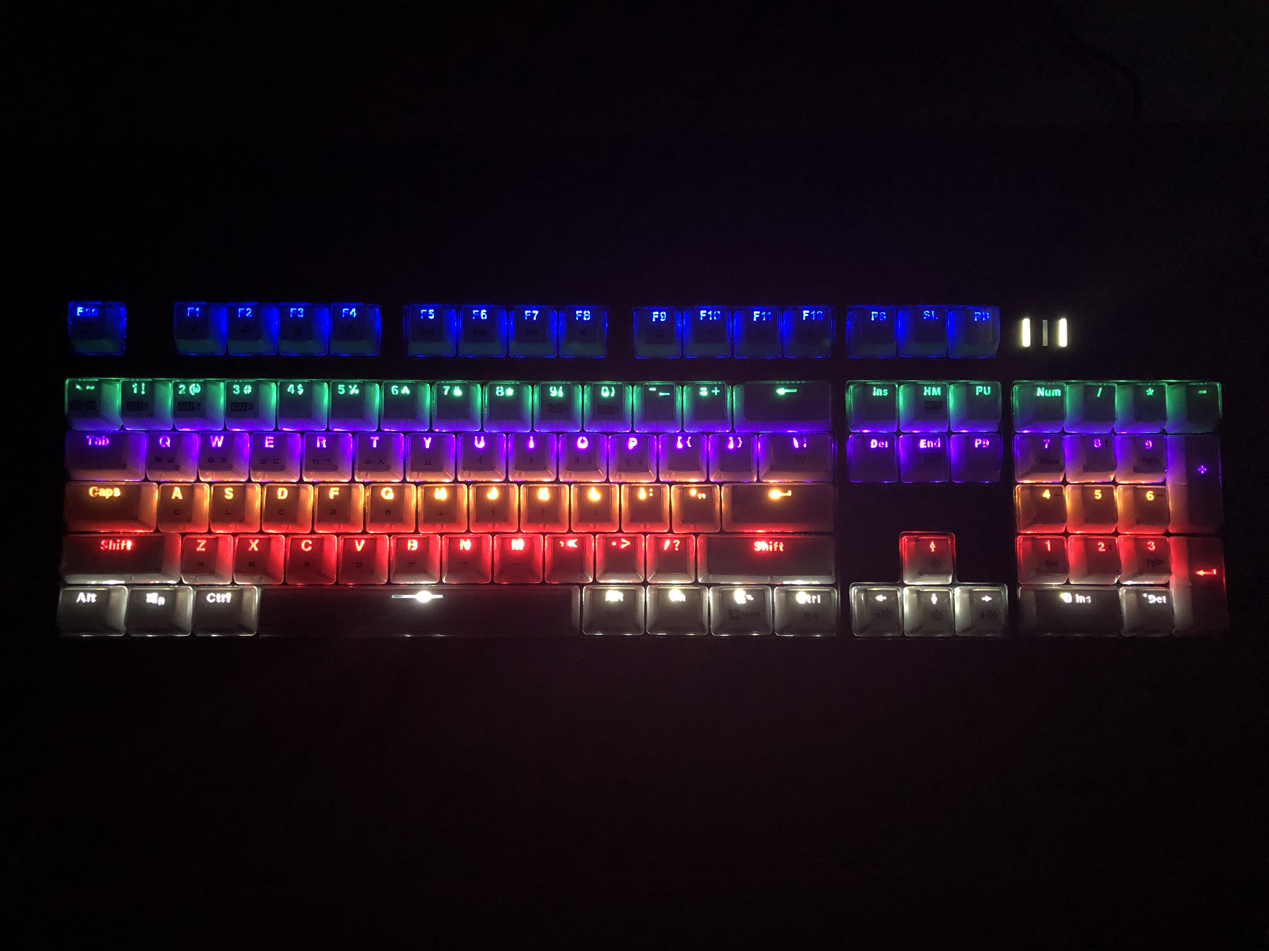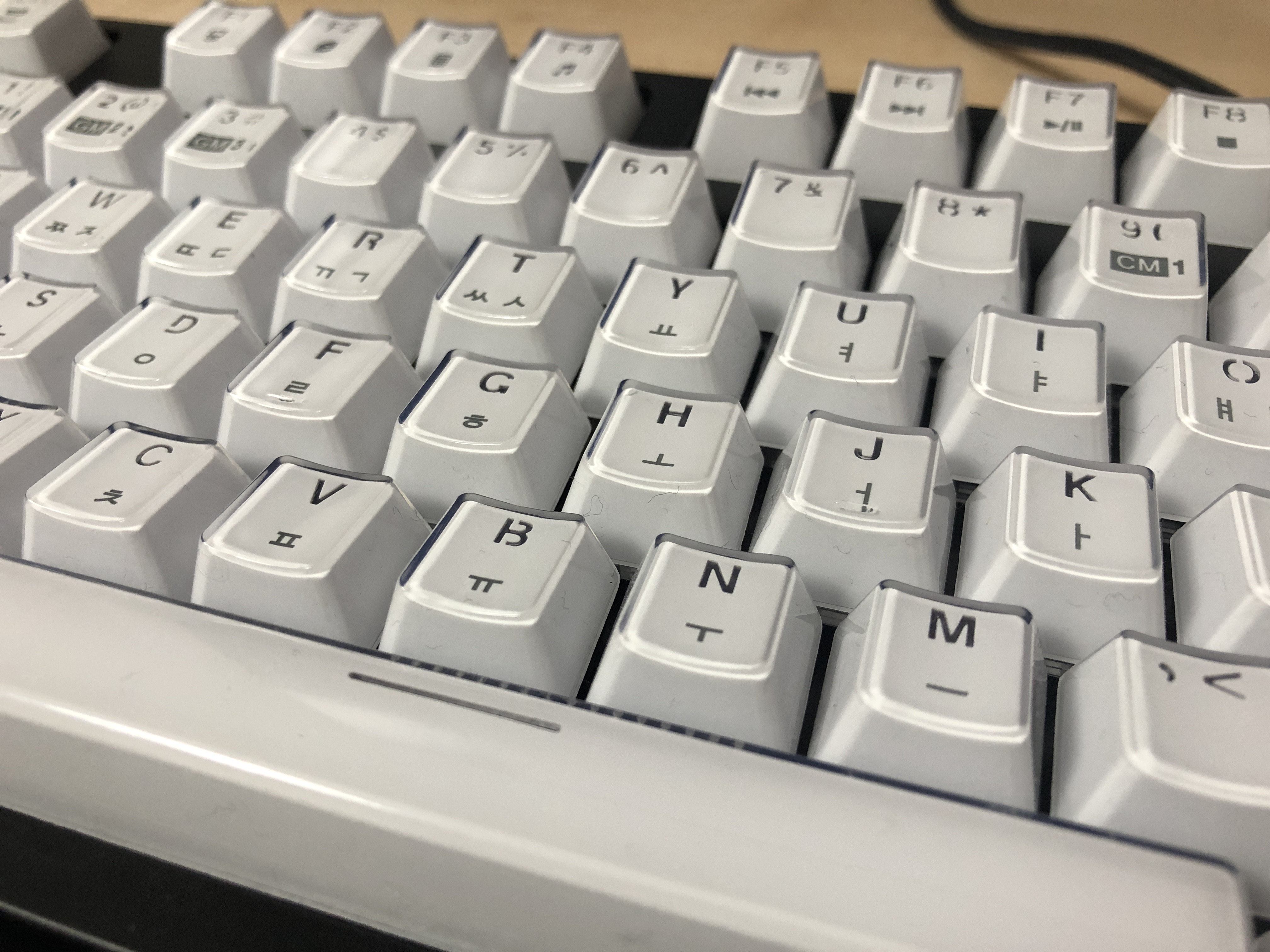 K8700을 구매한 이유는 바로 아크릴 재질의 키캡이다. 화려한 백라이트의 효과가 아닌 아크릴 재질의 촉감이 주된 이유였다. 손톱과 손가락으로 타이핑을 하는 습관 때문에 일반적인 키보드에 키스킨을 씌우지 않으면 미끄러워서 타이핑이 어렵다. 하지만 K8700의 아크릴 키캡은 보통의 ABS나 PBT보다 미끄러짐이 적었다. 키스킨 없이도 원활한 타이핑이 가능하여 구매한 것이다.