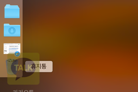프로그램 삭제도 간편합니다. 윈도우에서는 윈도우-제어판-프로그램 및 기능-삭제 순으로 프로그램을 삭제합니다. 하지만 Mac OS에서는 아이콘을 드래그해서 휴지통으로 넣어 버리면 삭제가 됩니다. 휴지통에 보관된 자료는 일정 기간이 지나면 삭제됩니다. 간단하죠? 그냥 휴지통에 넣으면 끝입니다.